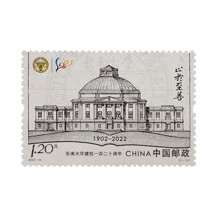 中国邮政定于2022年6月6日东南大学校庆日发行《东南大学建校一百二十周年》纪念邮票一套1枚,全套邮票面值为1.20元。