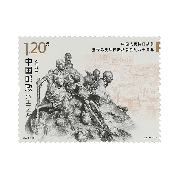 根据党中央有关中国人民抗日战争暨世界反法西斯战争胜利80周年纪念活动安排,中国邮政于2025年9月3日发行《中国人民抗日战争暨世界反法西斯战争胜利八十周年》纪念邮票1套13枚、小型张1枚,全套面值为20.8元。邮票计划发行数量为600万套、小型张为500万枚。