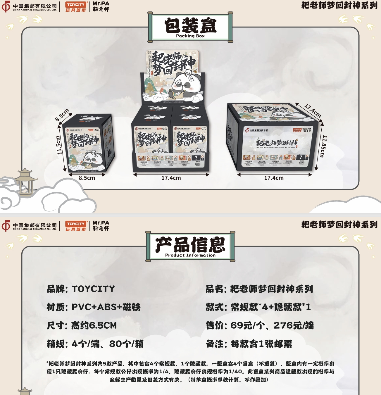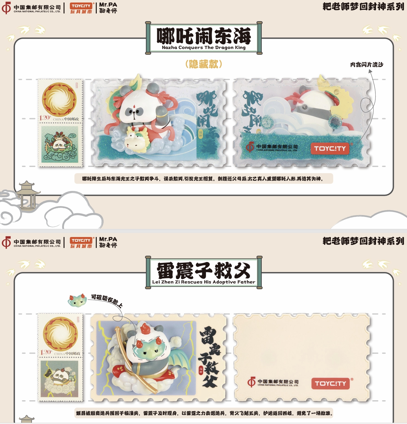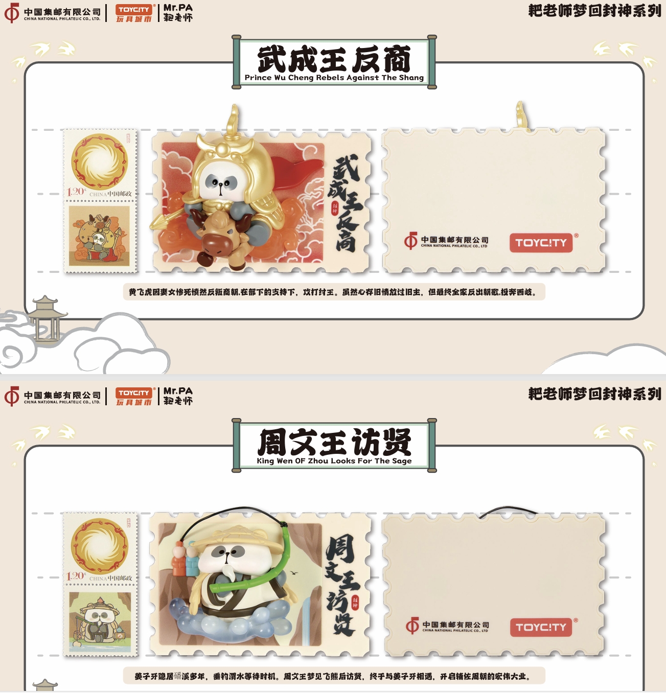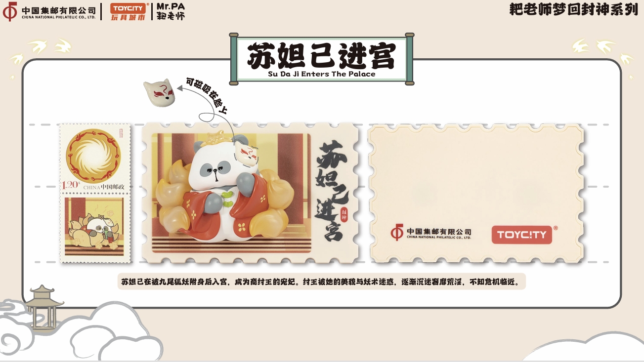中国集邮有限公司与TOYCITY于2024年9月10日联合发行《耙老师梦回封神》系列盲盒。