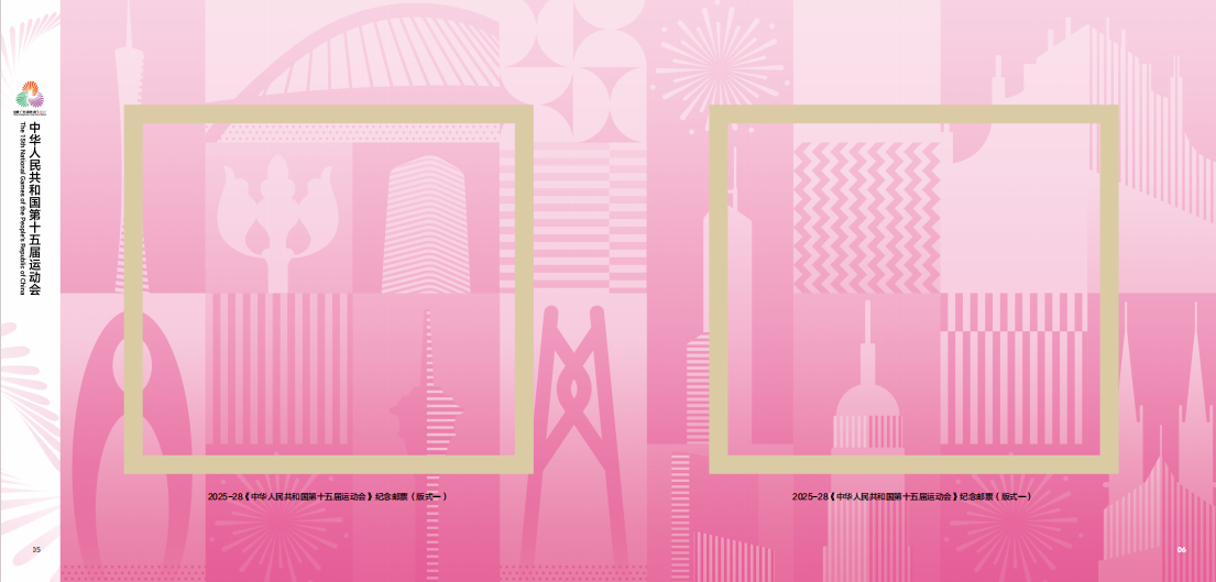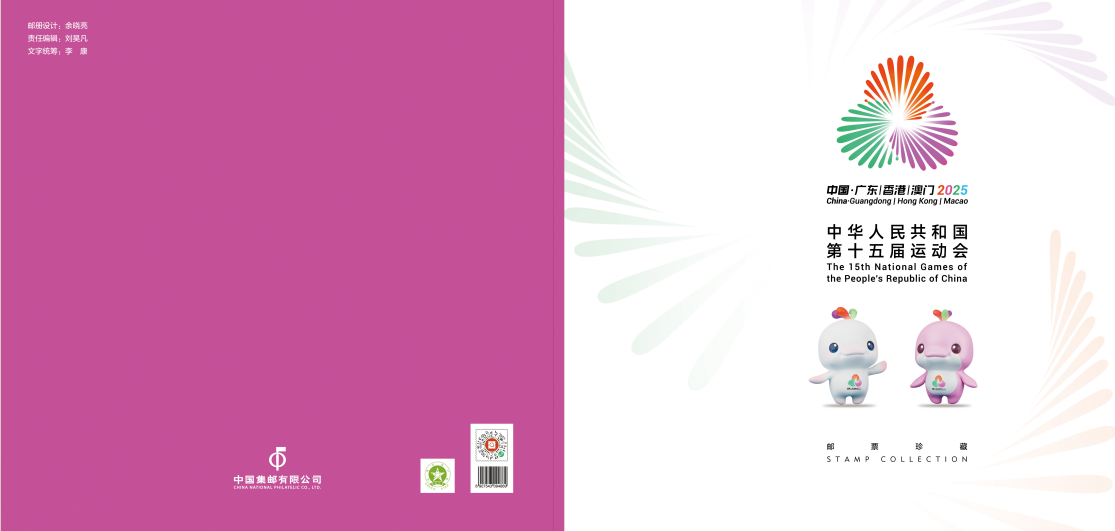 中国集邮有限公司于2025年11月9日发行《中华人民共和国第十五届运动会》整版卡书。内插新邮版式一、版式二、首日封。
