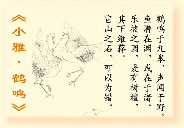 刘博:《小雅·鹤鸣》主要描述了仙鹤鸣叫时声传四野的亮清以及小鱼欢快的在水中嬉戏。