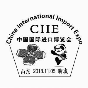 为配合邮票发行,山东济南、莱芜、聊城、德州邮政分公司各推出1枚纪念邮戳,四地戳图均由中英文对照邮票名称“中国国际进口博览会”、中国国际进口博览会标识、吉祥物组成,分别融入国家会展中心(上海)、上海东方明珠建筑群等元素。