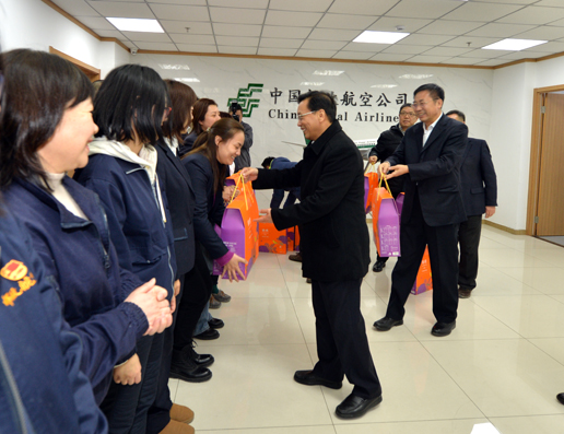 李雄向邮航员工们送上慰问品