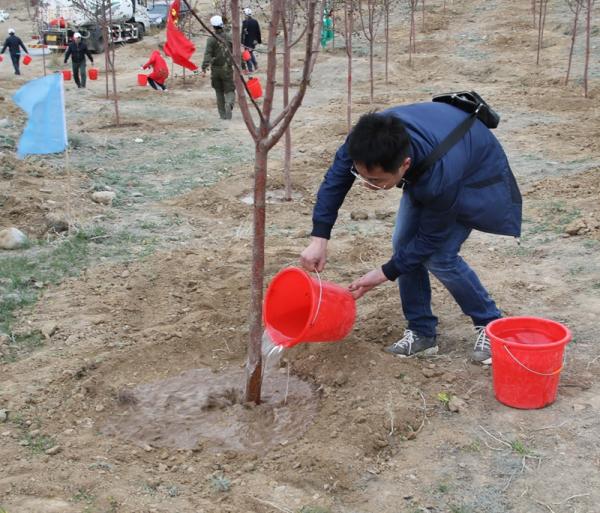 4月12日,哈密分公司开展“手植一棵树,绿化一片天”义务植树活动,分公司员工在大院内,或搬运苗木、挖坑、扶苗,或夯土、浇水,你一锹、我一锹的埋头植树,一颗颗树苗植入沃土,为办公楼院子增添了勃勃生机。