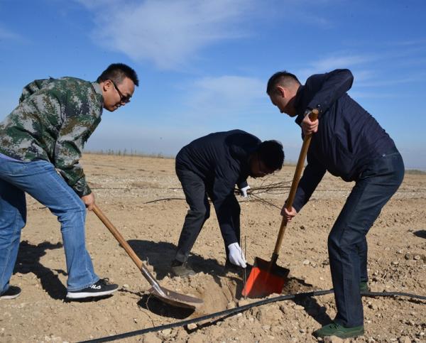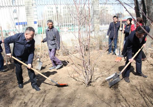 4月12日,博州分公司组织党员30余人开展春季植树活动,在院内种植苹果树10余棵。