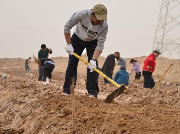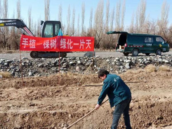 3月24日,喀什分公司在喀什市阿克喀什植树基地启动“手植一棵树 绿化一片天”邮政员工义务植树活动,80名员工共种植梭梭树苗8000株。