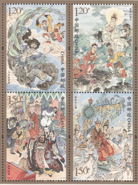 中国邮政定于2019年4月20日发行《中国古典文学名著——〈西游记〉(三)》特种邮票1套4枚,小型张1枚。详情如下: