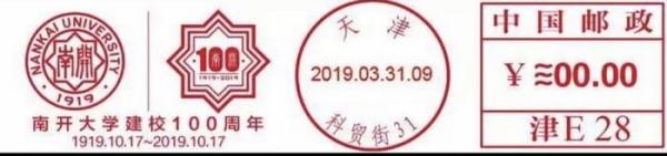 天津市邮政分公司为庆祝该主题邮局成立特发行主题邮局开业纪念封1枚,刻制纪念戳1枚。天津邮政部门特启用“主题邮局成立纪念彩色邮资机戳”和“南开大学百年校庆个性化邮资机戳”各1枚(见图)。