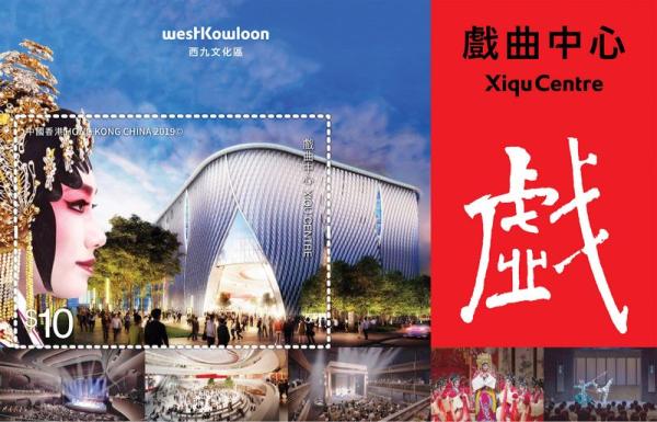 为充分展现香港西九戏曲中心的独特面貌,香港邮政3月19日发行《西九文化区——戏曲中心》邮票小型张1枚,面值为10港币。同时推出同图案面值为20港币的邮票小型张1枚,以平版印刷技术印制,另加烫压及压印特别效果。