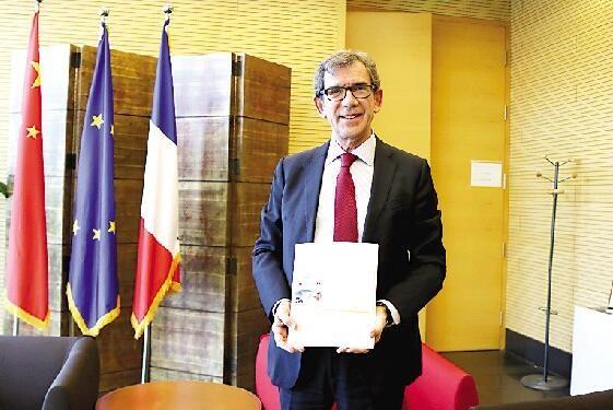 日前,中法建交55周年纪念封设计者马小玲一行专程前往法国驻华使馆拜会驻华大使黎想。黎想大使欣然在中法建交55周年纪念封样封上为中国集邮爱好者题写祝福语:在这个充满纪念意义的年份,我衷心感谢中方发行此枚纪念封,希望中国留法勤工俭学运动的先行者和中法关系的开拓者们的精神能让我们不断受到新的启发。