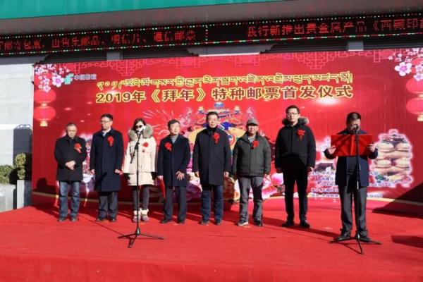 为了满足各界群众和集邮爱好者的需求,西藏自治区邮政部门在布达拉宫脚下的“天上西藏邮局”门前举办《拜年》邮票首发暨专家签售活动,邀请了本套邮票的责任编辑、著名邮票设计师干止戈与集邮爱好者见面,同时现场还准备了首日封、纪念封、己亥年生肖邮册、活动纪念邮戳等品种丰富的邮品。