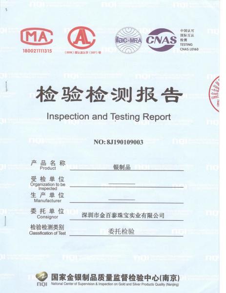 国家金银制品检验中心报告(传世收藏金猴大银章)