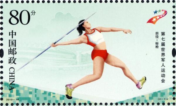 中国邮政定于2019年7月10日发行《第七届世界军人运动会》纪念邮票1套4枚。详情如下: