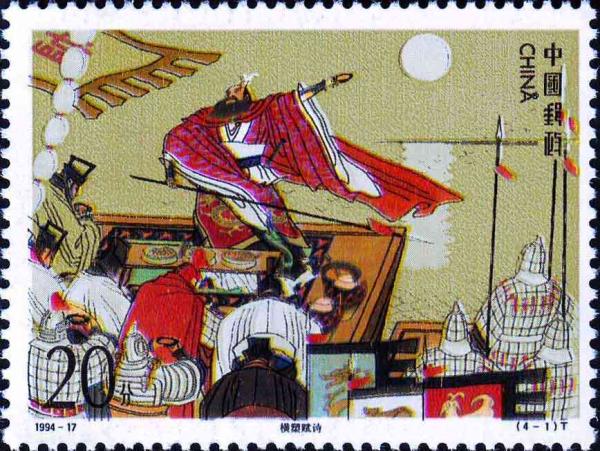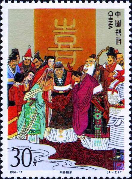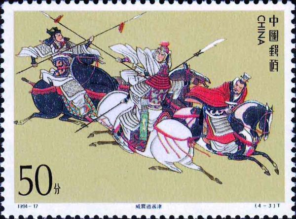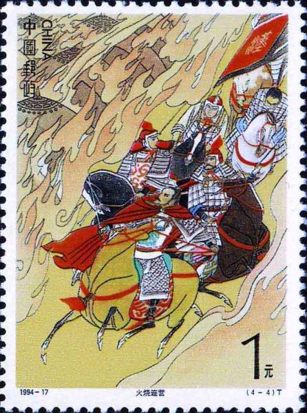 国家邮政局1994年11月24日发行《中国古典文学名著–三国演义》(第四组)特种邮票1套4枚,小型张1枚。