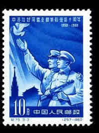 1960.3.10。(255)(257)影写版。(256)影雕套印。P11.5×11。25mm×35mm。50(10×5)。背面刷胶。[D]卢天骄。[E](256)高品璋。北京邮票厂。