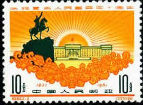 1961年7月11日我国邮电部发行“庆祝蒙古人民革命四十周年”纪念邮票,在每枚票面的下部分别印着8分和10分面值,而只能当8分和10分面额使用。这是中国发行的唯一的一套双面值票。