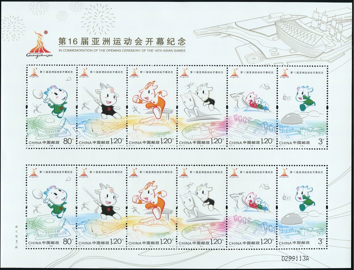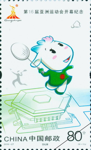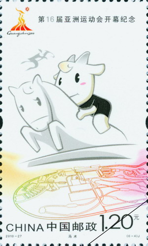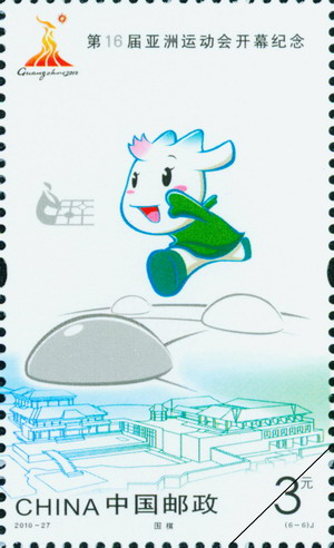 中国邮政2010年11月12日发行《第16届亚洲运动会开幕纪念》纪念邮票1套6枚。