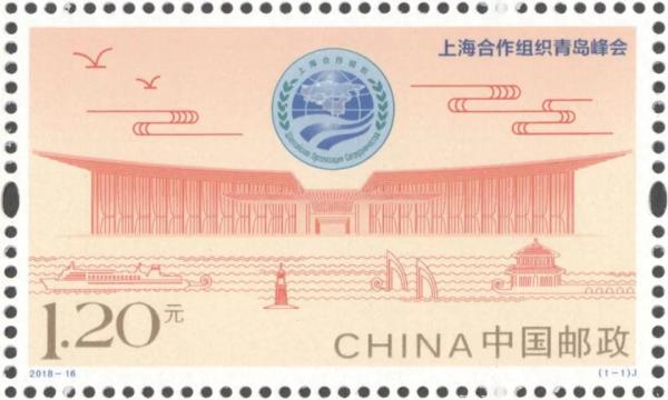 中国邮政于2018年6月9日发行《上海合作组织青岛峰会》纪念邮票1套1枚。