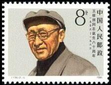 2-2为“王稼祥同志在延安”。图案中,王稼祥身穿八路军灰蓝色制服、手持烟斗,站在窑洞外面。