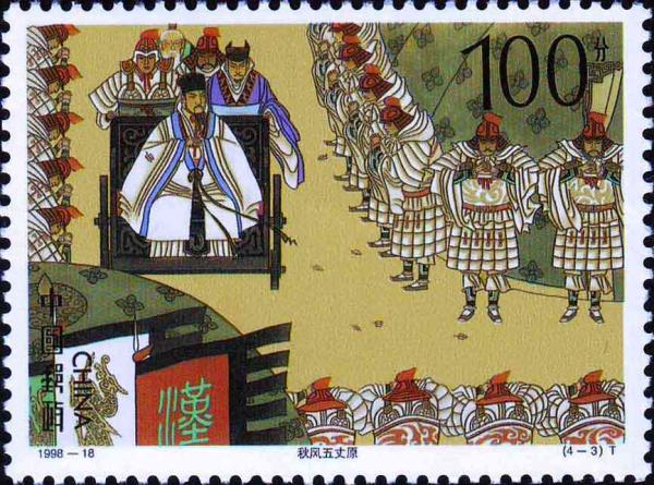 国家邮政局1998年8月15日发行中国古典文学名著《三国演义》(第五组)特种邮票1套4枚,小型张1枚。