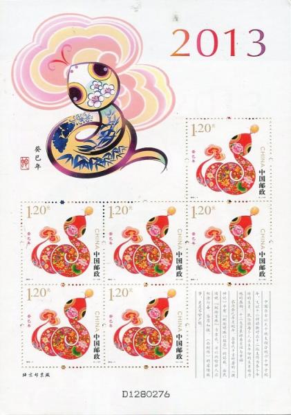 中国邮政2013年1月5日发行《癸巳年》特种邮票1套1枚,小本票1本。