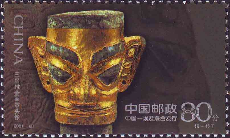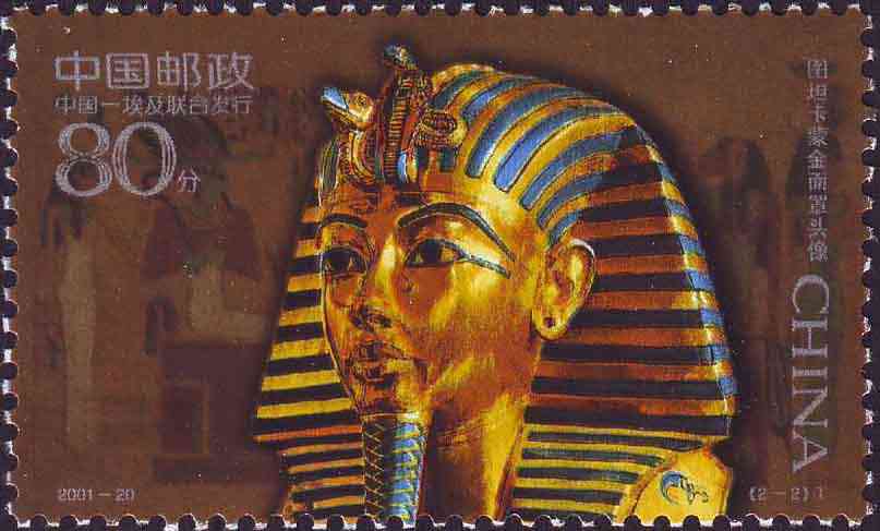 国家邮政局2001年10月12日发行《古代金面罩头像》特种邮票1套2枚。(与埃及联合发行)