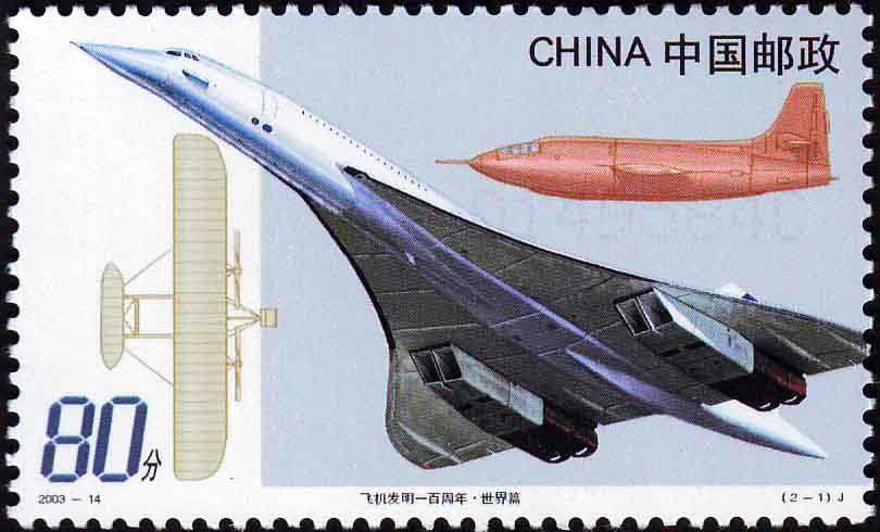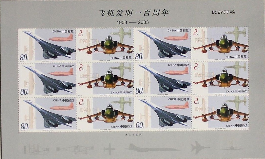 国家邮政局2003年8月9日发行《飞机发明一百周年》纪念邮票1套2枚。