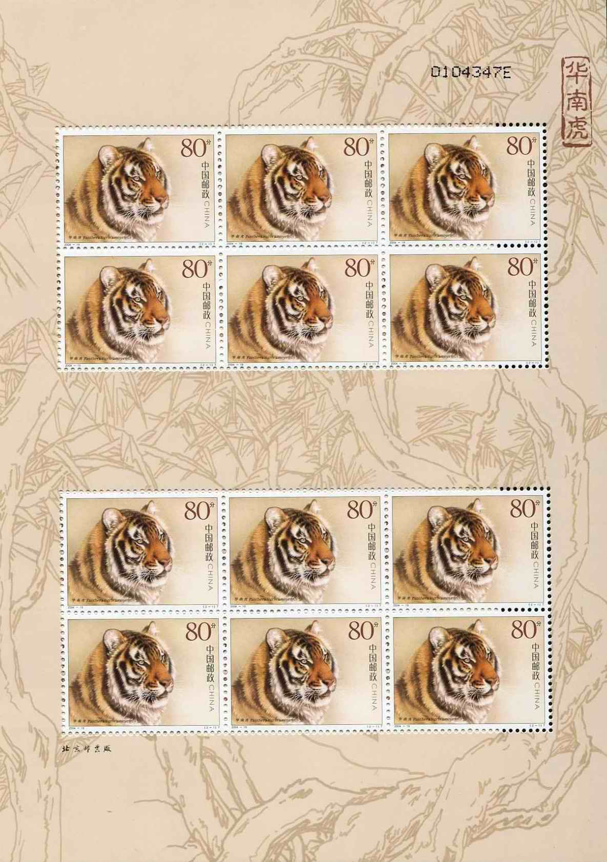 国家邮政局2004年8月23日发行《华南虎》特种邮票1套2枚。