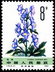 (1) 4分, 萱草, 502.66万枚 (2) 8分, 贝母, 1732.16万枚 (3) 8分, 乌头, 1541.16万枚 (4) 10分, 百合, 554.66万枚 (5) 20分, 天南星, 565.16万枚 (6) 70分, 芍药, 273.16万枚 1982.5.20。影写版。P11.5×11。30×40mm。50(10×5)。 邹建军。北京邮票厂。