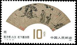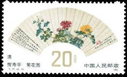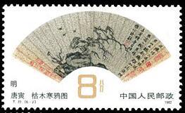 (1) 4分 明·沈周·秋林独步图 555·66万枚 (2) 8分 明·唐寅·枯木寒鸦图 1312·16万枚 (3) 8分 明·周之冕·竹雀图 971·16万枚 (4) 10分 明·陈洪绶、白汉·松下提诗图 514·16万枚 (5) 20分 清·恽寿平·菊花图 621·16万枚 (6) 70分 清·王武·梧禽紫薇图 352·16万枚 1982.7.31。影写版。P11.5。52mm×31mm。40(4×10)。许彦博。北京邮票厂。