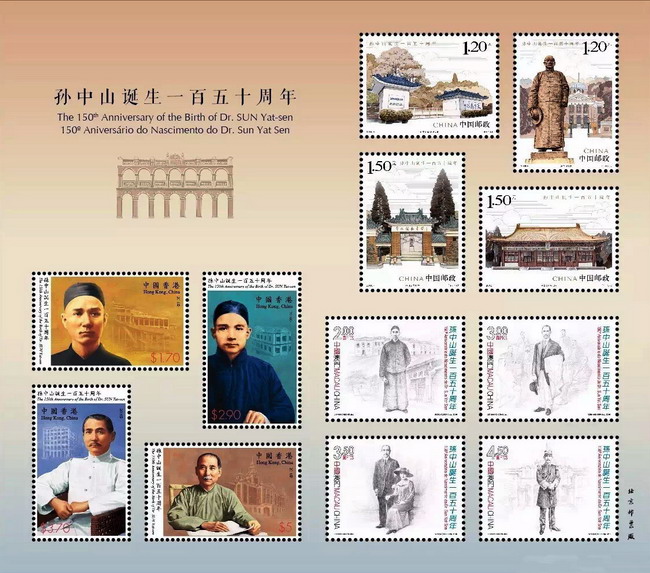 中国邮政2016年11月12日发行《孙中山诞生一百五十周年》纪念邮票1套4枚。
