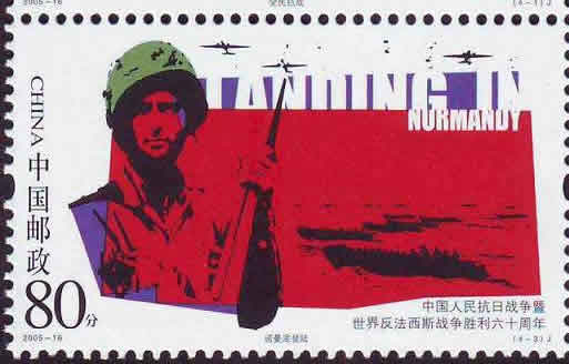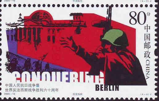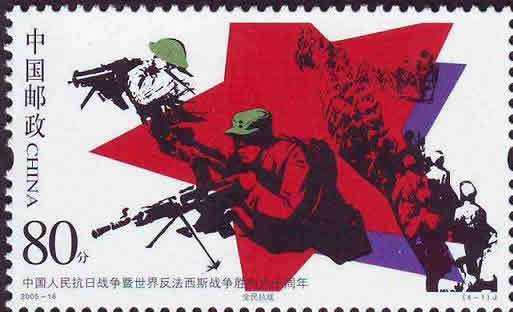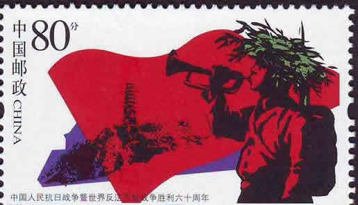 国家邮政局2005年8月15日发行《中国人民抗日战争暨世界反法西斯战争胜利六十周年》纪念邮票1套4枚,小型张1枚。