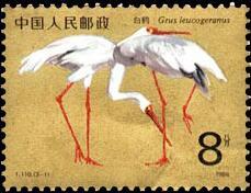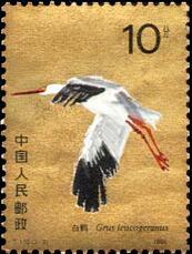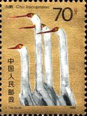 (1) 8分 白鹤 1451.90万枚 (2) 10分 白鹤 1824.65万枚 (3) 70分 白鹤 1232.62万枚 1986.5.22。影写版。黄永玉。北京邮票厂。 (1)P11×11.5、40mm×30mm、50(5×10)。 (2)(3)P11.5×11、30mm×40mm、50(10×5)。