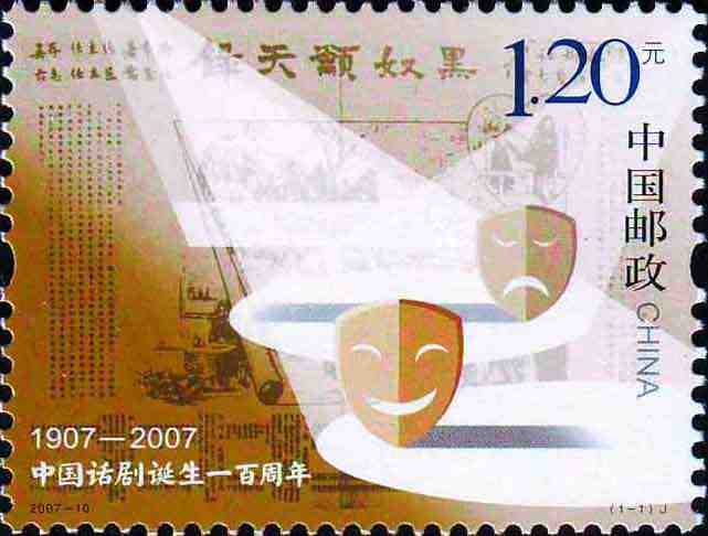 2007年纪念邮票《中国话剧诞生一百周年》国家邮政局2007年4月6日发行《中国话剧诞生一百周年》纪念邮票1套1枚。