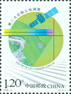 国家邮政局2008年6月25日发行《第二次全国土地调查》纪念邮票1套2枚。