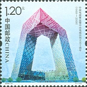 国家邮政局2008年9月2日发行《中国电视事业暨中央电视台创立五十周年》纪念邮票1套1枚。