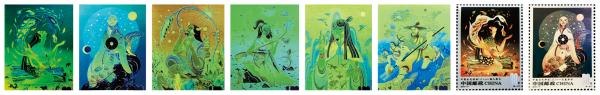 8月6日发行的《中国古代神话(二)》特种邮票,图稿一出现,便向我们展示出了强大的空间混合能力,它充满着创想和力量。《神话(二)》采用350线/英寸的高精度影写版印制,为了突出中国神话故事非凡的想象力和神秘感,首次在本套邮票中使用全真彩荧光工艺方案。