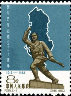 (318) 8分 阿尔巴尼亚地图、反法西斯战士纪念碑 800万枚