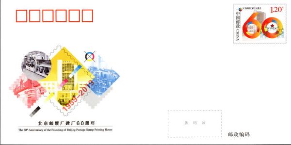 中国邮政定于2019年9月25日发行《北京邮票厂建厂60周年》纪念邮资信封1套1枚。详情如下: