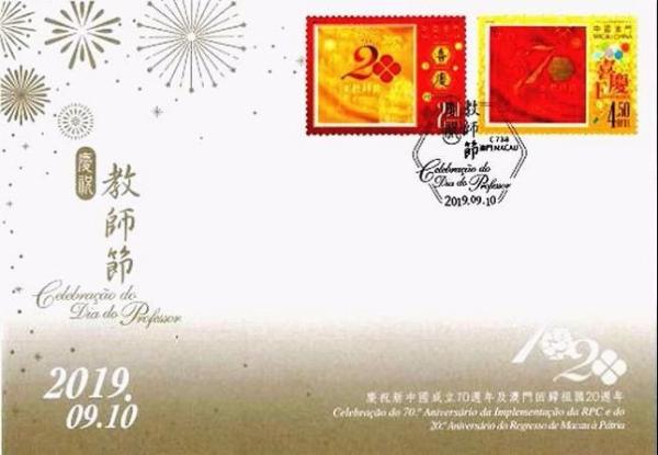 为庆祝2019年教师节,澳门邮电局特定于9月10日在邮政总局集邮商店设置临时柜台,为市民派发纪念此活动的纪念封,并提供加盖“庆祝教师节”纪念邮戳服务。