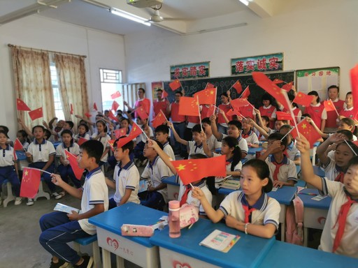 国庆前夕,广东省深圳市邮政分公司义工队组织15名志愿者,赴省定贫困村东源县船塘镇凹头村,开展了“不忘初心 与爱同行”志愿活动,与船塘第一小学的同学们共迎国庆。