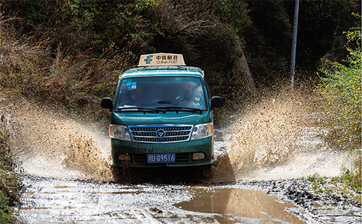 每到雨季,高原牧区坑坑洼洼的土路就变成了连片的水坑,邮车根本无法择路而行,随时都有可能陷进水坑。