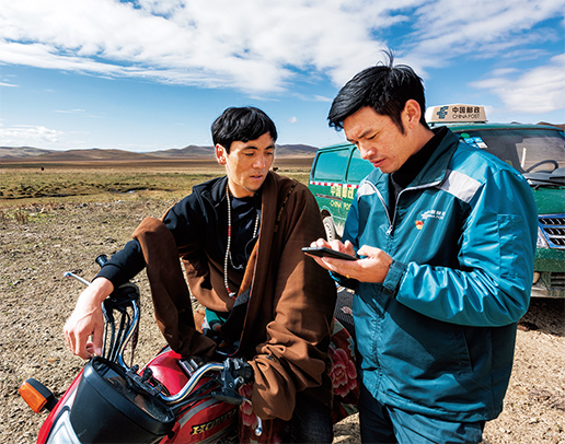 藏区的很多牧民不会用手机网购。每次,牧民只要看到哈弄夺机的邮车来了,就让他帮忙下单。