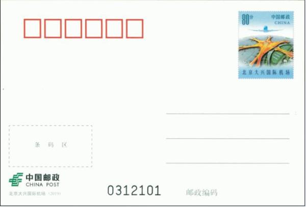 中国邮政定于2019年12月28日发行《北京大兴国际机场》普通邮资明信片1套1枚。详情如下: