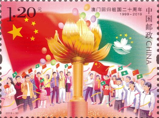 中国邮政定于2019年12月20日发行《澳门回归祖国二十周年》纪念邮票1套3枚。详情如下: