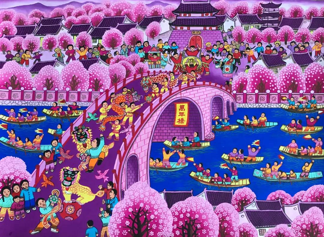 如今,青州农民画及相关产业从业者达3万余人,一年能创作出50多万幅画作,画作及衍生品交易额超3亿元,中等创作水平的农民画作者人均年增收2万元,走出了一条振兴乡村文化与增加农民收入“双翼齐飞”的路子。