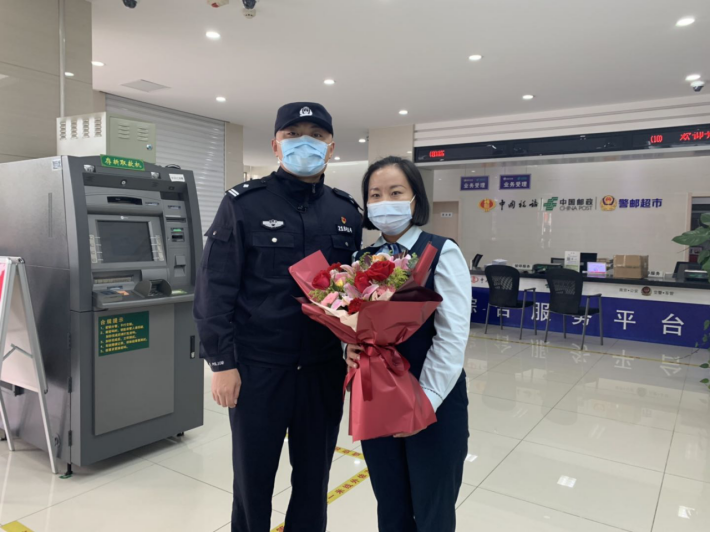 “感谢你积极出手拦截了这起电信诈骗,挽救了一个家庭。”10月14日,浦口公安分局珠江派出所的民警及见义勇为珠江工作站一行人来南京浦口邮政分公司珠江支局,为理财经理颜燕献上鲜花,并授予“见义勇为积极份子”称号,以表彰其在防止客户遭受电信诈骗中做出的努力和贡献。