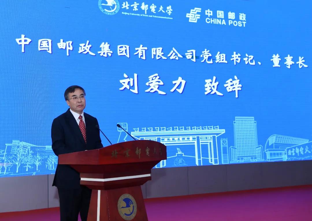 刘爱力在致辞中表示,“六十五载,传邮万里,钟灵毓秀,薪火相传”。作为一名老邮电人,能够在北京邮电大学65周年校庆之际来到美丽的北邮校园参观学习交流,感到十分亲切、非常高兴。他表示,北邮与中国邮政同根同源、一“邮”相承,具有深厚的历史渊源。学校自创办以来,为中国邮政输送了许多优秀的专业和管理人才,对邮政事业的持续健康发展给予了巨大支持,作出了重要贡献。他代表中国邮政集团有限公司,对北京邮电大学长期以来对邮政事业发展给予的大力支持表示衷心的感谢。
