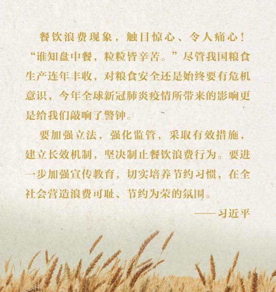 正如习近平总书记指出的,保障国家粮食安全是一个永恒的课题,任何时候这根弦都不能松。粮食安全在田地里,也在餐桌上,只有坚持一手狠抓粮食生产,一手狠抓厉行节约、反对浪费,才能真正有底气将自己的饭碗端牢。