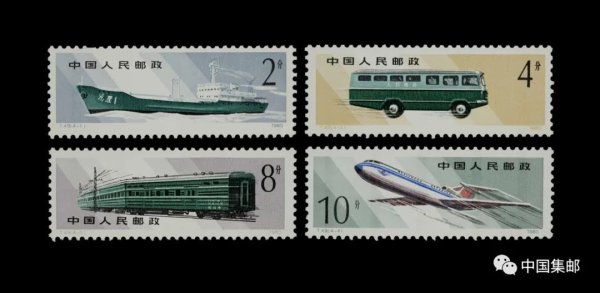 1980年3月20日,我国发行了《邮政运输》特种邮票一套4枚。这是我国第一套磷光邮票。在灯光照射后将邮票放置在暗处,可以发出绿色夜光。四枚图案的主体部分分别为大连邮政局“鸿雁I号”邮政运输船、邮政汽车、火车邮政车厢、民航三叉戟大型载客飞机。
